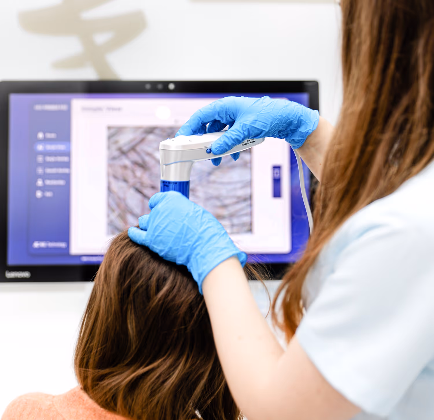 Rozpoczyna się od szczegółowego wywiadu, który pomaga zrozumieć stan zdrowia, styl życia oraz dotychczasowe problemy z włosami i skórą głowy.